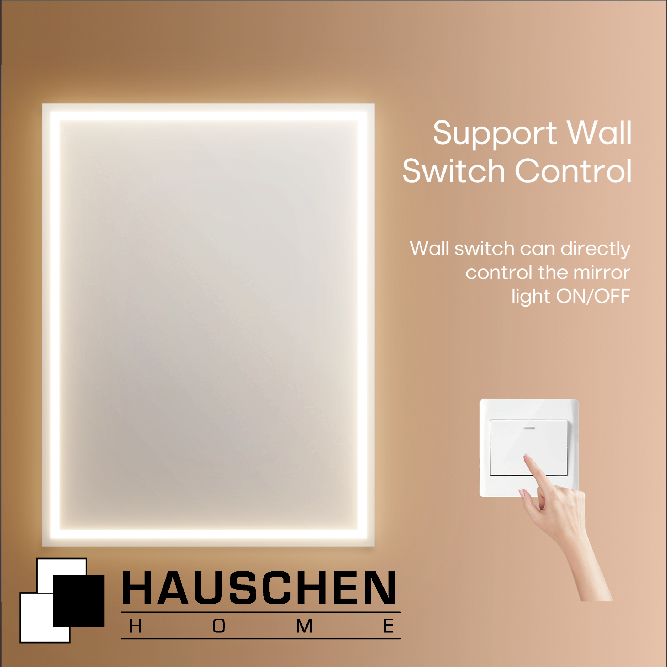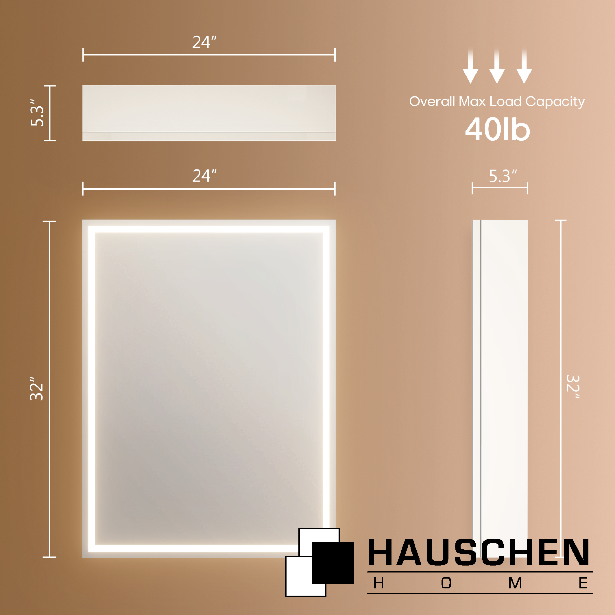 HAUSCHEN HOME 28 x20 Inch LED Medicine Cabinet Lighted Bathroom Mirror, Defogger, Stepless Dimmable, 3000K/5500K Color Temperature Wall Mounted Makeup Mirror, Adjustable Shelf (Assembly Required)